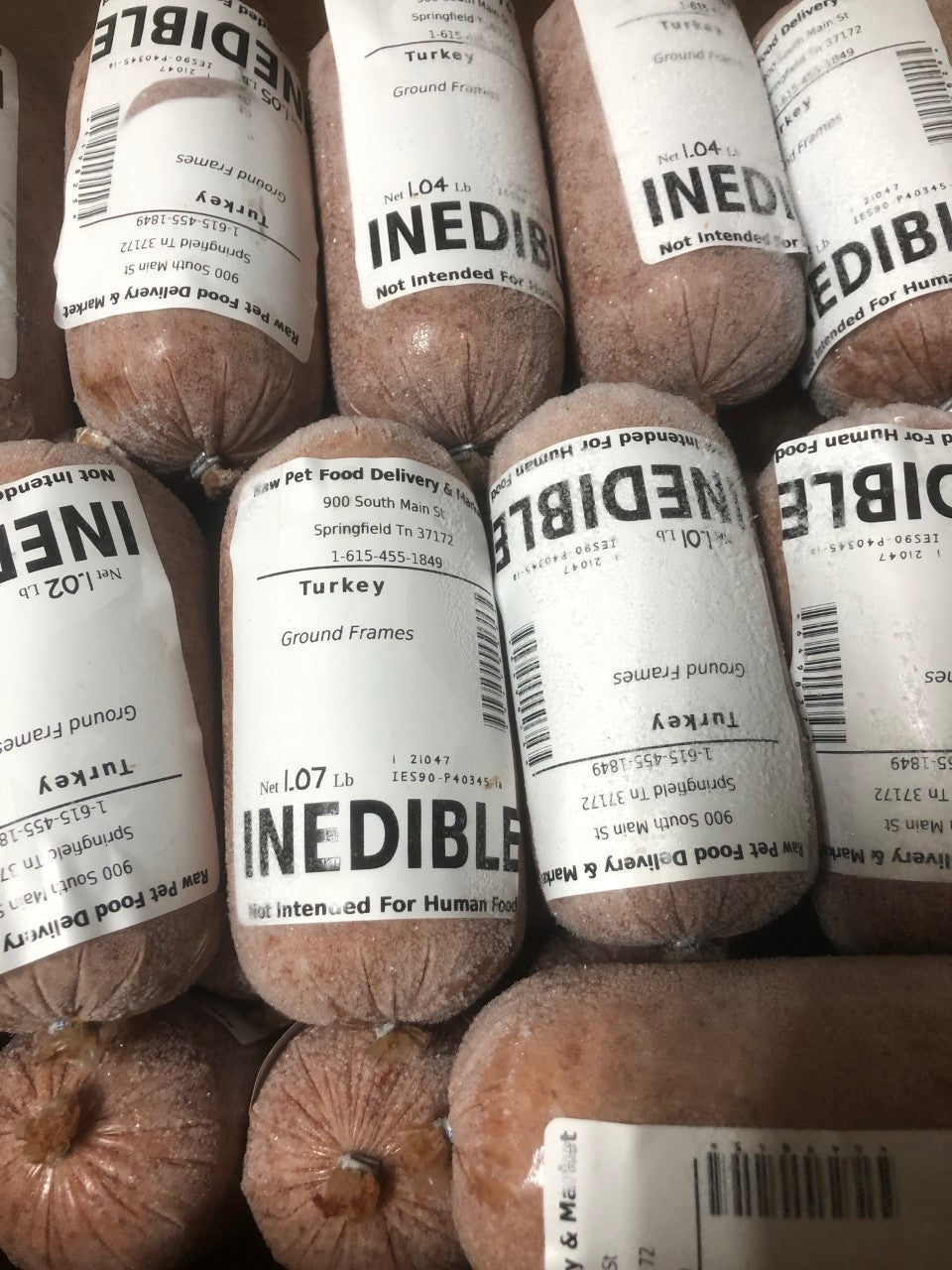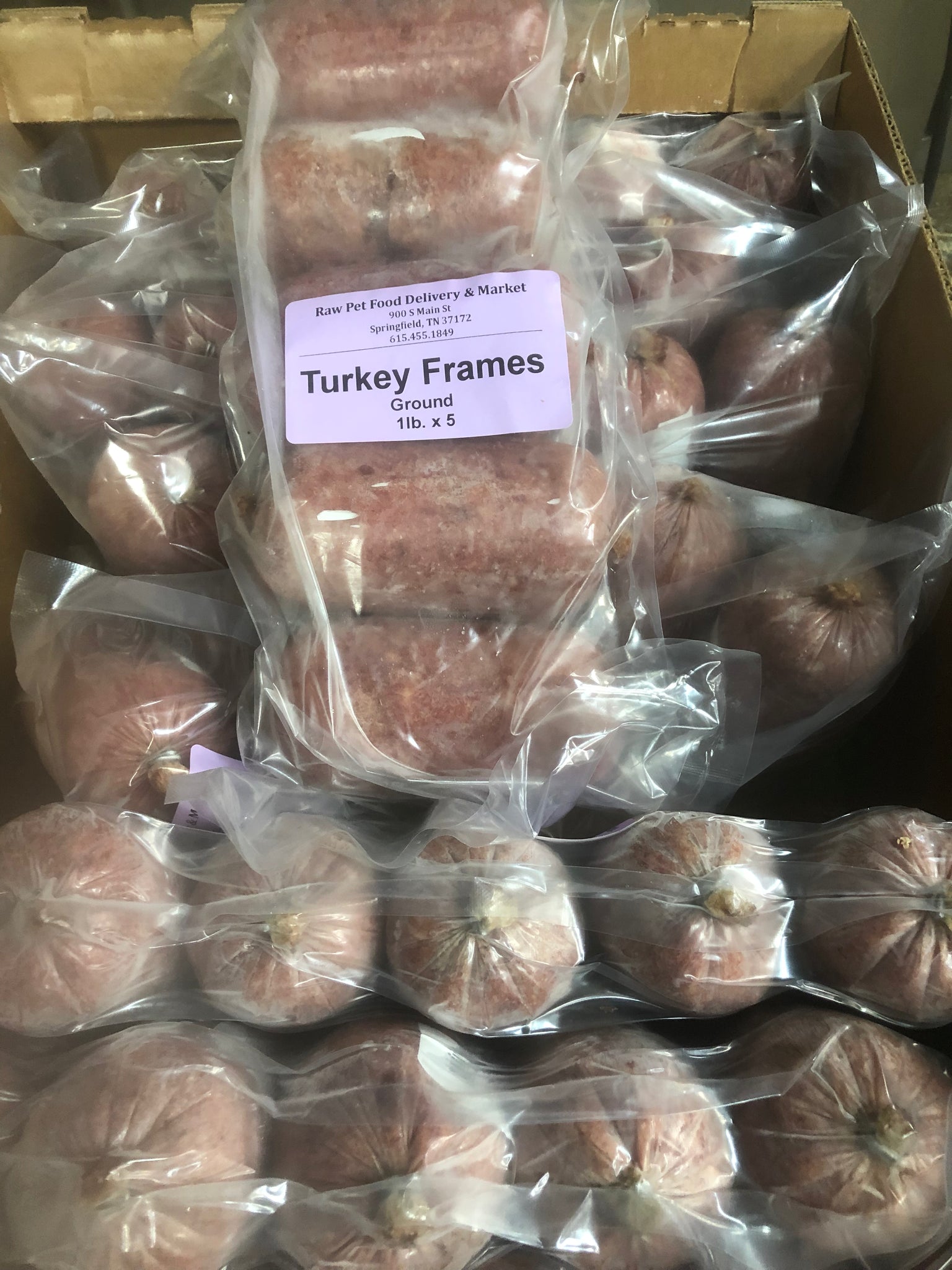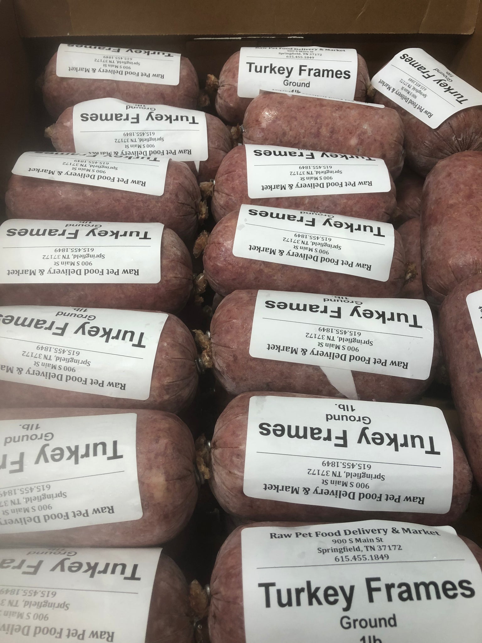 Turkey is a highly digestible protein for pets, it contains macronutrients in the form of vitamins and minerals. Turkey is considered a "cold" protein., it's not as inflammatory to your pet as chicken may be. Our frames ground, contain meat, bones & skin, no organs. Can be used for the bone portion of your meals or a supplement.