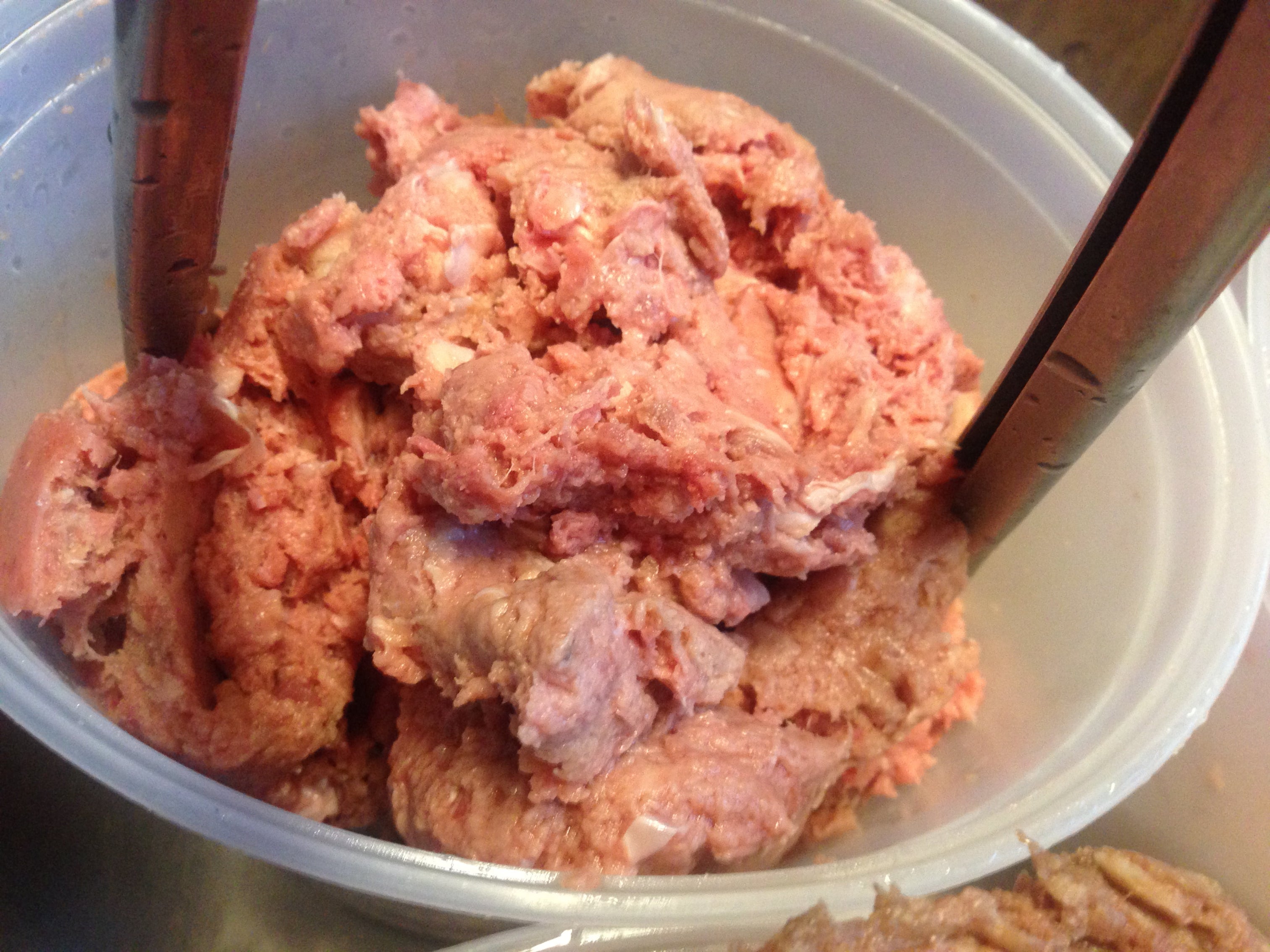 Keep raw meat and poultry separate from other foods. Wash working surfaces, utensils (including cutting boards, preparation and feeding bowls), hands, and any other items that touch or contact raw meat or poultry with hot soapy water.